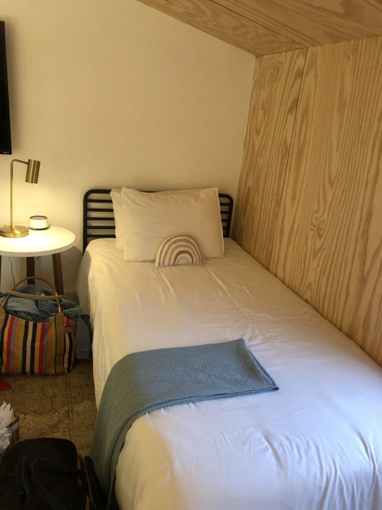 Each cabin in town has its own unique architecture and interior design. The A-Frame Ranch styles its cabins with modern, minimal touches that feel clean and comfy. There’s a common kitchen and living area where we played games, caught up on trash TV and played music while getting ready to go out.